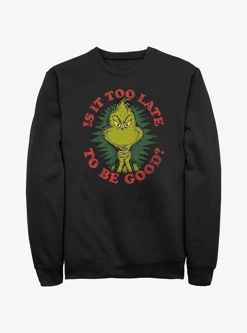 Dr. Seuss's Grinch Is It Too Late To Be Good Sweatshirt