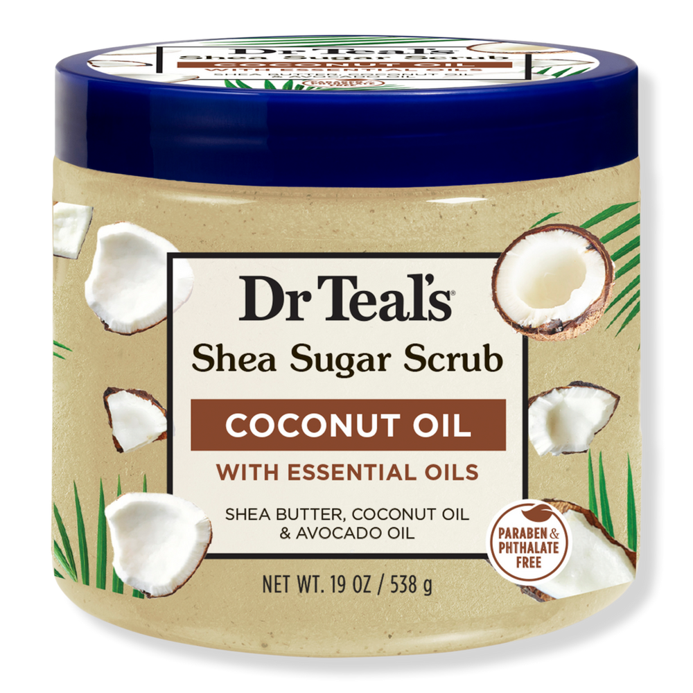 COCONUT OIL SUGAR SCRUB 19OZ. Benefits: Dr Teal's Shea Sugar Body Scrub gently exfoliates skin with pure sugar ingredients. Shea Butter, Coconut Oil and Avocado Oil moisturizes and leaves skin feeling soft and smooth. Formulated with Essential Oils to help calm the mind and uplift the mood when you need it the most. Massage Dr Teal's Shea Sugar Body Scrub into wet skin in circular motions, focusing on rough, dry areas. Rinse thoroughly. Also try as a hand scrub!. Paraben free, phthalate free, and never tested on animals. : :