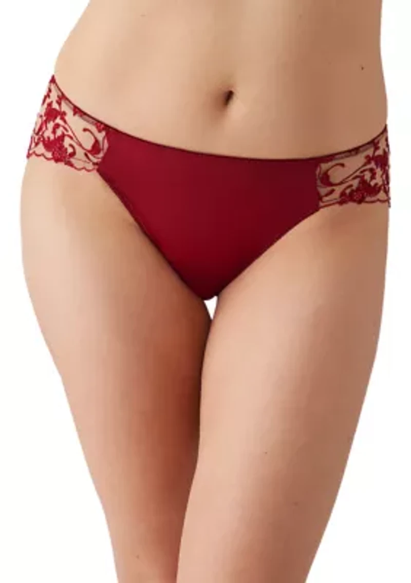 Lacy cutouts at the sides add drama to this bikini panty from Wacoal. Imported Material & Care Nylon, spandex, elastane, polyester Hand wash
