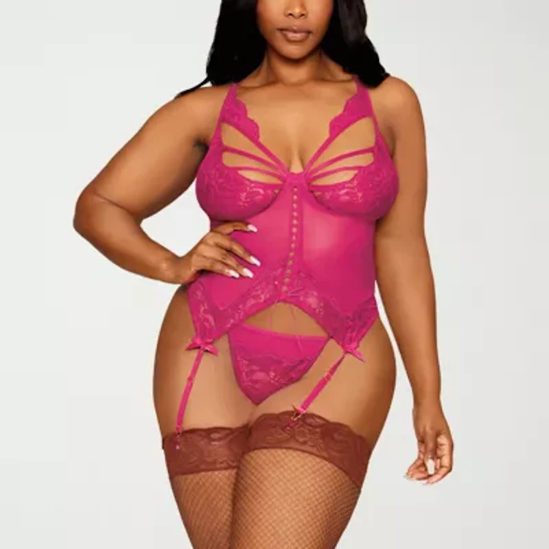 DreamGirl Plus Floral Lace Mesh Bustier Set-13283X