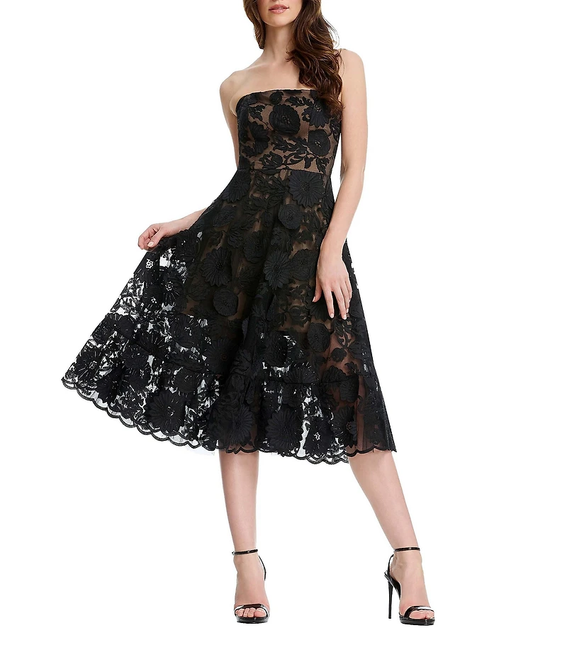 Dress the Population Kailyn 3D Floral Applique Mesh Strapless Fit & Flare Midi Dress in Chattanooga, TN