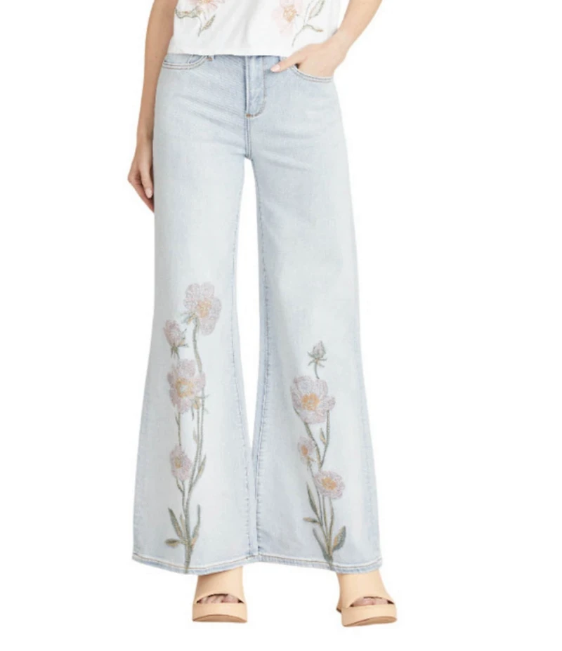 Driftwood Penelope Stretch Denim Garden Rose Embroidered Wide Leg Jeans