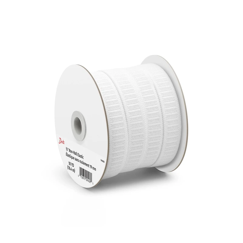 Dritz Non-Roll Woven Elastic resists rolling and twisting. It is used in a variety of applications and is ideal for waistbands, sleeves, and leg bands in light to medium-weight fabrics; such as, shorts, skirts, pants, and blouses. Details:White3/4" x 18yd.Roll and twist resistant elastic; great for waistbandsUse with light to medium weight fabricsMachine washable and dryable in temperatures up to 200 degrees F