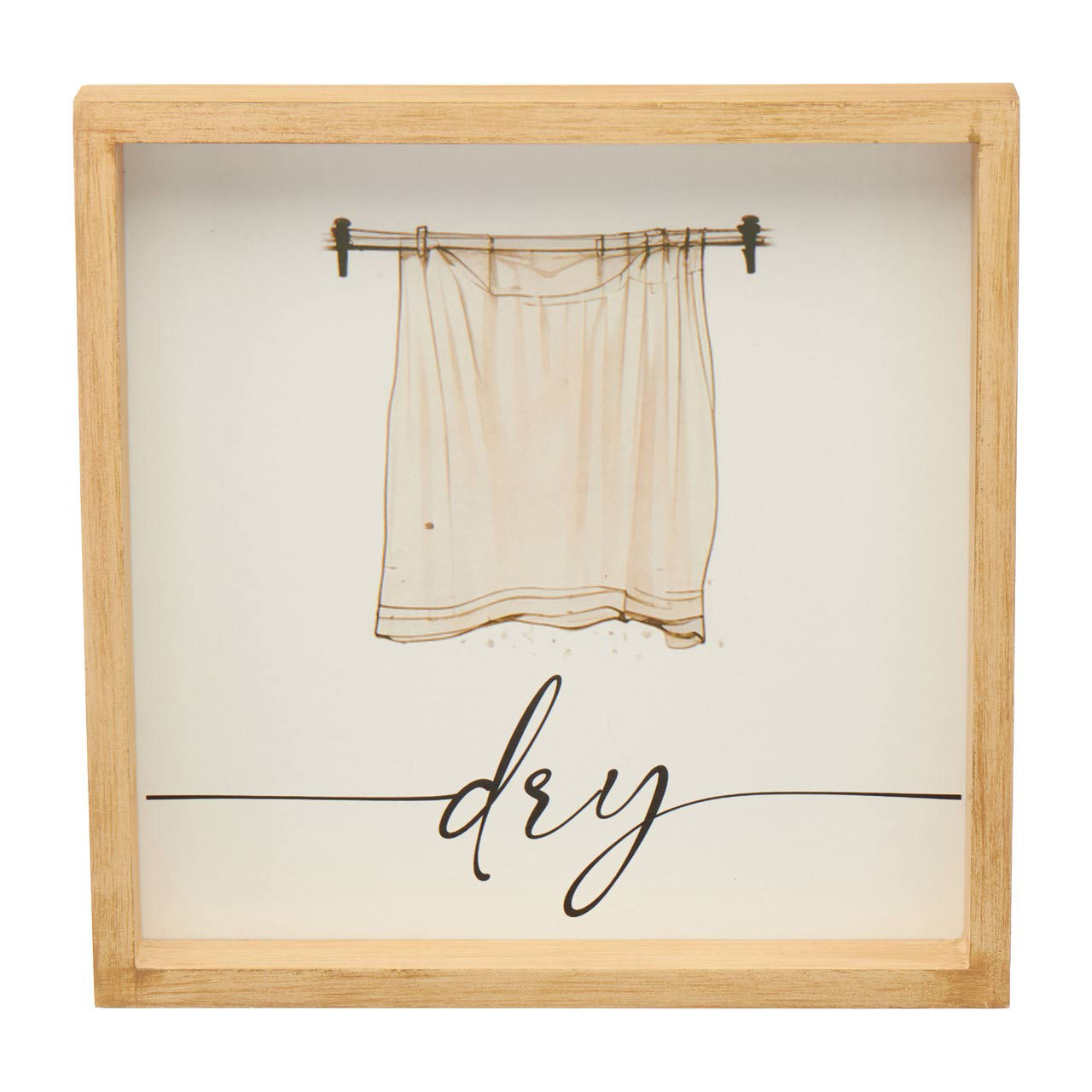 This decor piece features a beautifully illustrated image of a classic laundry scene—a freshly washed cloth hanging on a line to dry. The word "dry" is elegantly scripted below the image, adding a whimsical and motivational touch to your space.