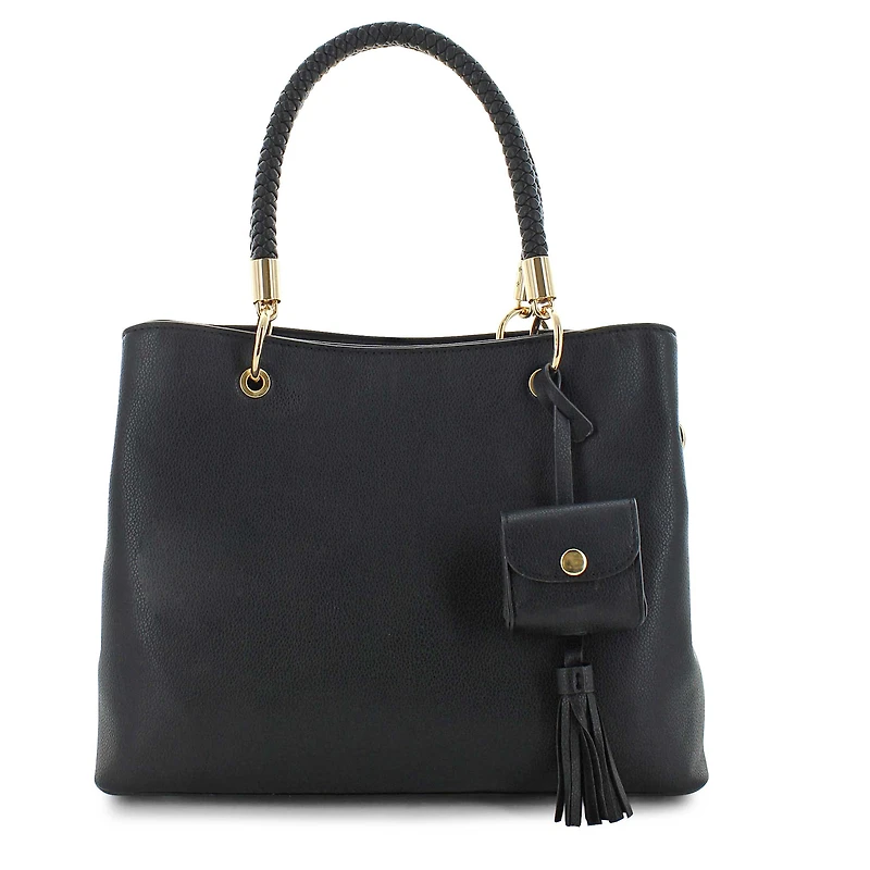 Elevate your accessory game with the DS Bags Barbie Satchel, a fusion of elegance and functionality. Crafted with premium materials and meticulous craftsmanship, this satchel exudes sophistication. From its chic design to its spacious interior, it's the perfect companion for any occasion. It even has a removable tassel accent that includes an Ear Pod storage pocket. Discover timeless style and practicality with the DS Bags Barbie Satchel. Shop SHOE DEPT. ENCORE now and add a touch of glamour to your wardrobe!