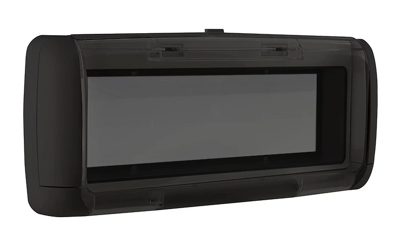 - Universal mounting with a transparent, fold-down door and rubber seal