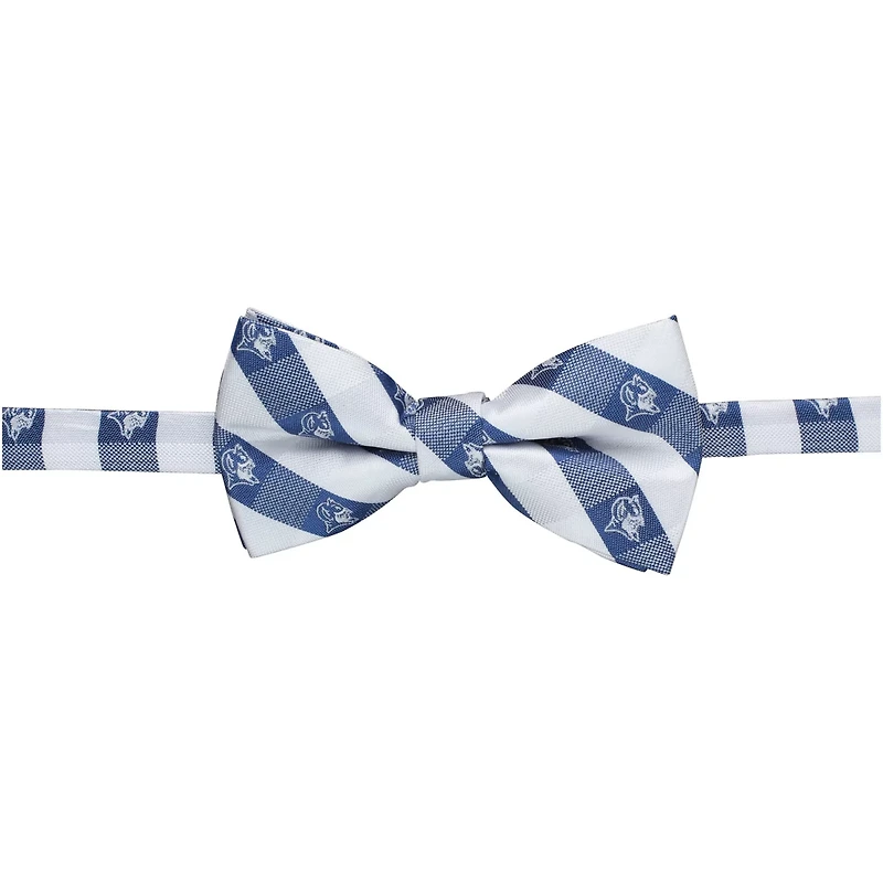 Cheer on your Duke Blue Devils with this Check bow tie Bring some formal to your fanaticism with the bold Duke Blue Devils colors and embroidered graphics on this bow tie Don't be afraid It's a clip-on so you don't have to worry about learning how to tie a bow tie It is adjustable to fit just about any Duke Blue Devils fan