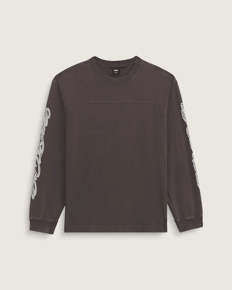 Made of pieced jersey for added visual interest, the Durham Long Sleeve Shirt shows off an engineered discharge print down the sleeves for artwork that's imprinted directly into dyed fabric. A woven Vans label finishes the look with heritage branding details.