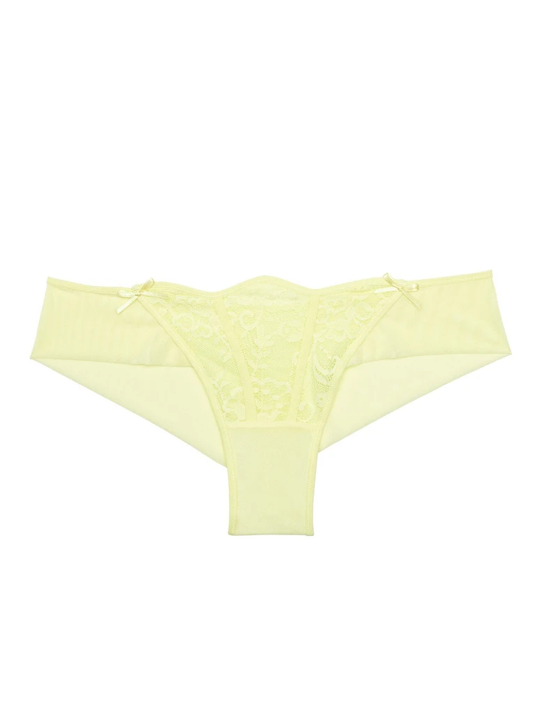 The Dusana Cheeky Light Yellow lace cheeky is a romantic-fashion standout. Effortlessly charming, this style is A Cheeky Panty for a flirty finish. (Available in sizes XS-XL.)