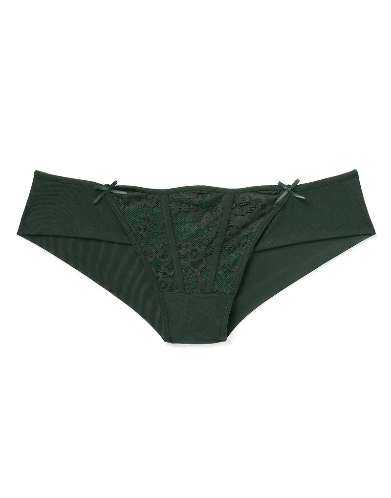 The Dusana Cheeky Dark Green lace cheeky is a romantic-fashion standout. Effortlessly charming, this piece is A Cheeky Panty, bringing flirty allure to your top drawer. (Available in sizes XS-XL.)
