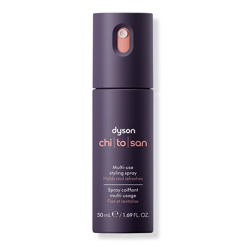 DYSNCHTSNMLT-SSTYLSPRYRTL(HR) 1.7OZ. Benefits: Hold end style or revive and restyle second day hair with one multi-use styling spray for flexible all-day retention.. Humidity shield protects against environmental humidity.. Best for wavy, curly or coily styles across all hair types. Maintains bounce and movement in curly styles.. Non-aerosol spray releases an ultra-fine mist for even application and lightweight, buildable hold, without the crunch.. Features: Dyson has been researching hair science for a decade. Our hair laboratories and scientists are committed to pioneering hair styling tools and products engineered to perform.. The Chitosan collection is developed for lightweight retention. Our chitosan is derived from oyster mushrooms, not shellfish. Mushroom-derived chitosan offers a sustainable and non-allergenic solution for our active ingredient.. Key Ingredients: Chitosan derived from oyster mushrooms locks in your styles.. Blend of amino acids repair signs of surface damage for healthier looking hair.. Bamboo extract helps retain styles and maintain smoothness.. Fragrance: A subtle blend of green and floral notes, Dysons signature fragrance unfolds with bergamot, basil and tangerine..
