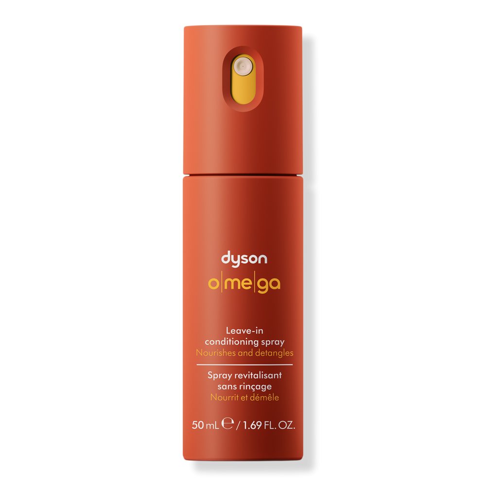 DYSON OMEGA LVIN COND SPRY (HERO) 1.7OZ. Benefits: Nourishes now to strengthen over time, for up to 94% stronger hair.. Reduces frizz for maximum shine.. Seals cuticle to reduce breakage by up to 73% for all hair types.. Multi-protection protects against heat up to 450F, humidity, UV and breakage.. Features: Dyson has been researching hair science for a decade. Our hair laboratories and scientists are committed to pioneering hair styling tools and products engineered to perform.. The Omega nourishing collection contains a proprietary oil blend that is powered by sunflower oil sourced from the Dyson Farms. Powered by sunflowers, engineered by Dyson.. Key Ingredients: Dyson Oli7 is our unique blend of 7 omega-rich oils, including sunflower seed oil sourced from Dyson Farms.. Dyson Farming Sunflower seed oil contains Omega 6 & 9 to protect, nourish and restore dry hair.. Fermented complex promotes absorption and provides a lightweight texture.. Fragrance: A fresh, delicate fragrance with citrus notes of sparkling bergamot and mandarin..