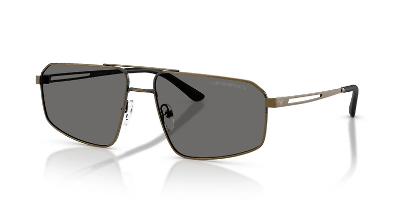 Elevate your style with the Emporio Armani EA2173 sunglasses. These pilot sunglasses for men feature a sleek gold finish on lightweight metal frames and an edgy irregular double bridge design. Matte tones and drilled temple construction bring a contemporary flair to timeless elegance, while laser-engraved Eagle branding near the hinge adds a sharp signature detail. Complete with classic grey lenses and sunglasses with adjustable nosepads for a tailored fit. Perfect for those who appreciate bold sophistication.