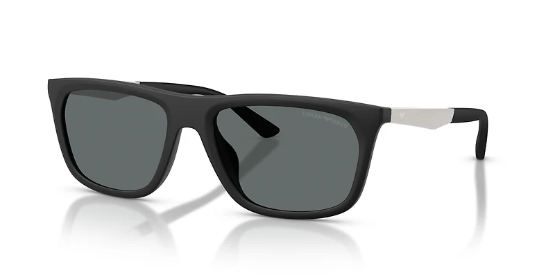 Discover effortless modernity with the Emporio Armani EA4272U sunglasses. These sleek rectangular frames are crafted from a durable blend of nylon and propionate for a refined and lightweight feel. Aluminum temples, featuring laser-engraved Eagle logos and bio-rubber tips, deliver a unique balance of boldness and comfort. Finished in black with grey polarized lenses, these Emporio Armani sunglasses for men offer exceptional clarity by reducing glare and reflections while providing 100% UVA/UVB protection. With a universal bridge fit, these black sunglasses are perfect for a structured and sophisticated style.