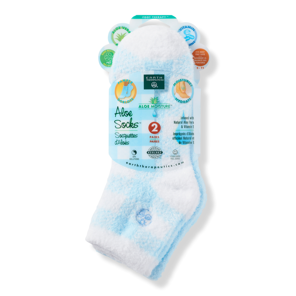 DOUBLE SOCKS PACK PLAID & SOLID BLUE. Benefits: Superior hydration to make feet soft. Pampers feet in luxury. Key Ingredients: Aloe Vera. Vitamin E. :