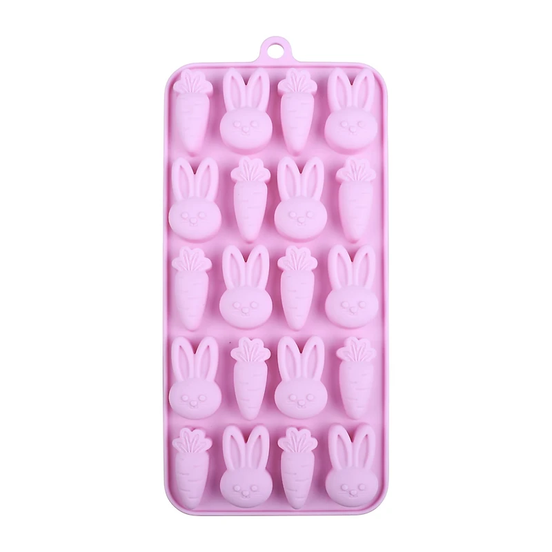 Make adorable sweet treats with this seasonal silicone mold. With a mix of Easter bunny and carrot shapes, this food-grade silicone mold is ready for your chocolate or candy melts to create delicious Easter candies.Details:Includes Easter bunny and carrot designs4.07" x 8.87" x 0.59" (10.3cm x 22.5cm x 1.5cm) overall mold size20 cavities (10 of each design)FDA siliconeFood safeOven safe up to 450°F (232°C)Freezer safeCare Instructions:Wash in hot soapy water, dry well before and after each useDishwasher safe (top rack only)Avoid using abrasive cleaners or scouring padsNever use sharp utensils on molds