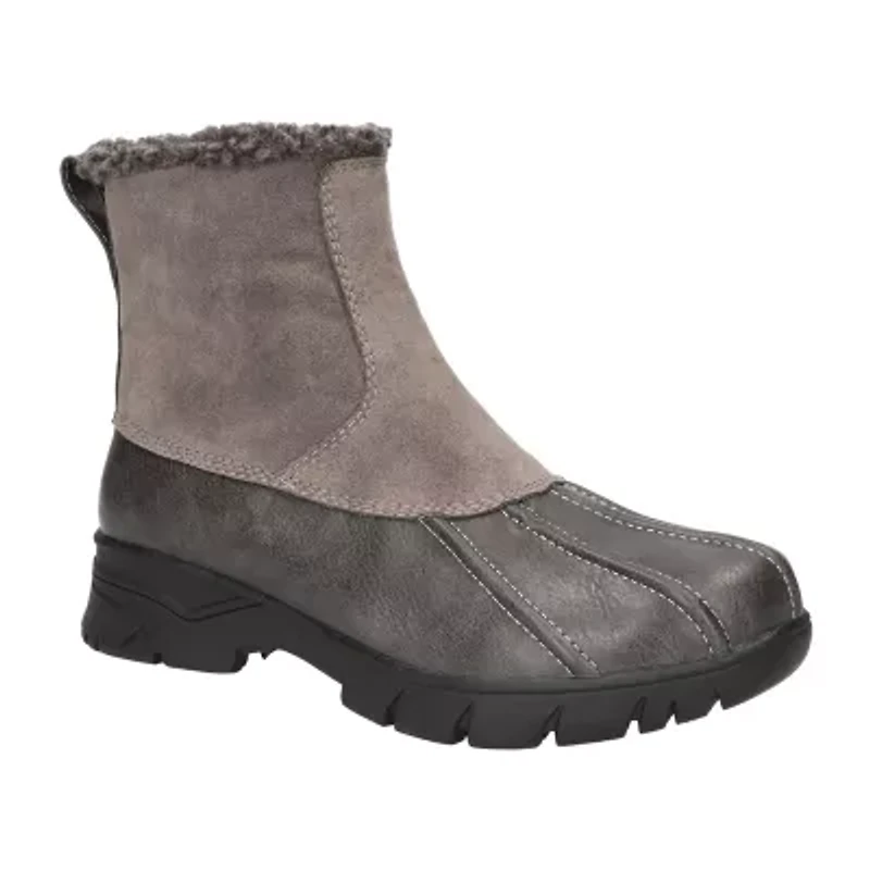 The Yuka from Easy Works by Easy Street offers a modern take on a traditional winter boot with contemporary design and unrivaled comfort. The multi-material upper creates a fresh look that will enhance all your favorite casual outfits. Stay on-trend while braving the elements in these fashion-forward boots. Made with easy-to-care-for materials and an inner shell that provides waterproof protection. Designed with a mini lug non marking slip-resistant outsole with the easy motion pro comfort system, the removable antimicrobial contoured insole for all-day comfort.