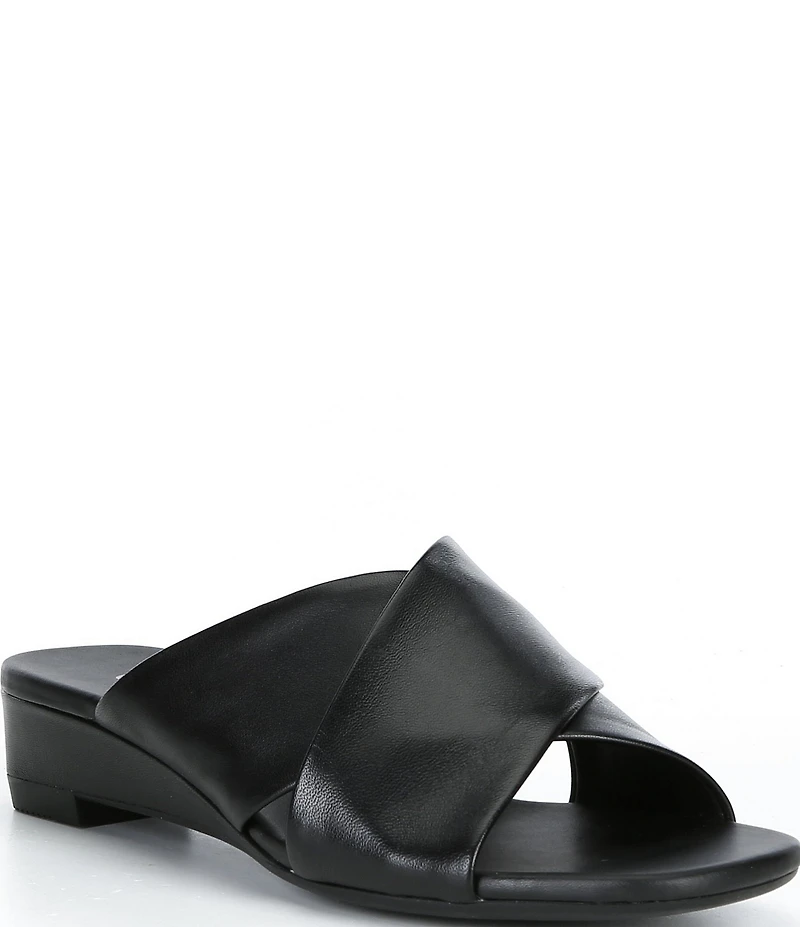 ECCO Astrid Leather Criss-Cross Banded Wedge Slide Sandals