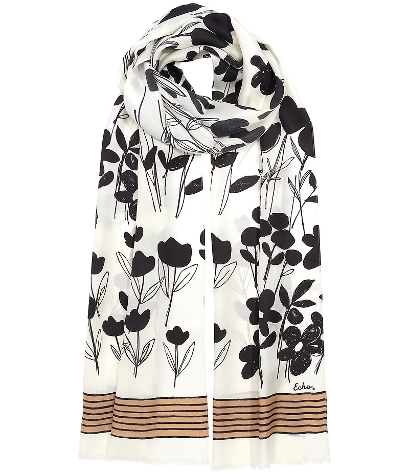 Echo Scribble Floral Silk Scarf