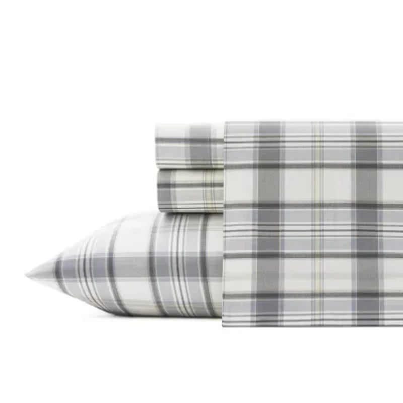 Update your bedding ensemble with a new cotton sheet set from Eddie Bauer. Crafted with crisp and breathable cotton, each piece in this set boasts a matching pattern for a unified look that complements your decor's color palette. The machine-washable material allows for an easy upkeep of this sheet set, which conveniently includes one flat sheet, one fitted sheet, and two pillowcases (one for twin sizes). 100% cotton percale construction, with a crisp and breathable feel. Set includes a fully elasticized fitted sheet which prevents slipping from the mattress and ensures a perfect fit. Machine washable for easy and convenient care. Made thoughtfully and sustainably using oeko-tex dyes.