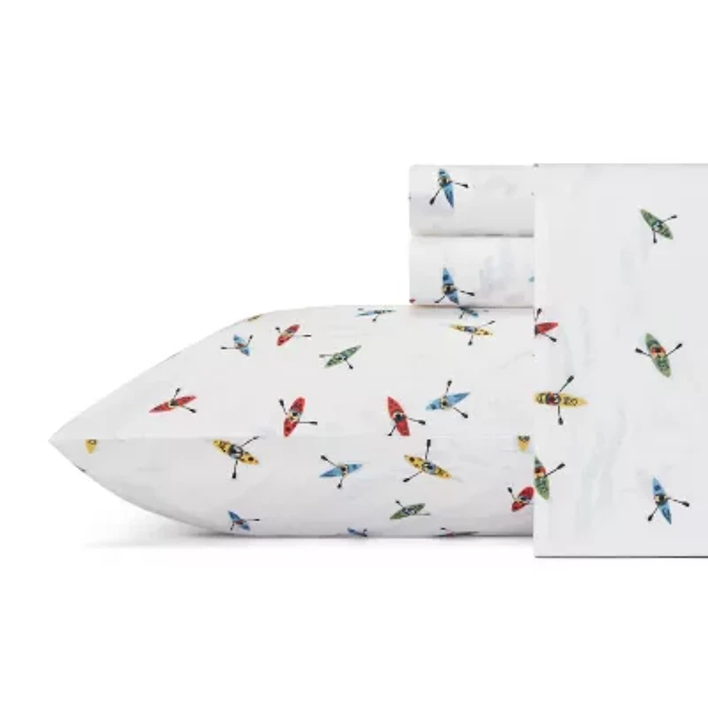 Made from 100% cotton, with crisp percale weave; 200 thread count single ply sheet- perfect for sensitive skin; more breathable and will stand up to repeat washes; tightly woven for a super smooth hand; woven to be lightweight. Set includes a fully elastic fitted sheet- premium elastic installed all-around to keep the fitted sheet in place; deep pocket: 12" fitted sheet pocket depth - fitted sheet fits mattress up to 15"; twin-xl sheet set includes flat sheet, fitted sheet and 1 standard pillowcase. The coordinating pillow cases offer a self-hem and side envelope closure, highlighting a neat and tidy look. Certified by oeko-tex, an international association focused on textile safety and sustainable production. Machine wash and rinse in cold water, gentle cycle with mild detergent the Eddie Bauer t200 sheet sets coordinate beautifully with any Eddie Bauer bedding set