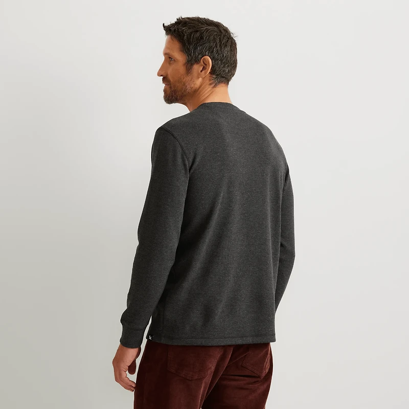 With its classic waffle-knit texture and supersoft yet durable cotton blend fabric, this is a shirt that will stand up to years of heavy use. Wear it on its own or layered under a flannel or fleece shirt jacket.