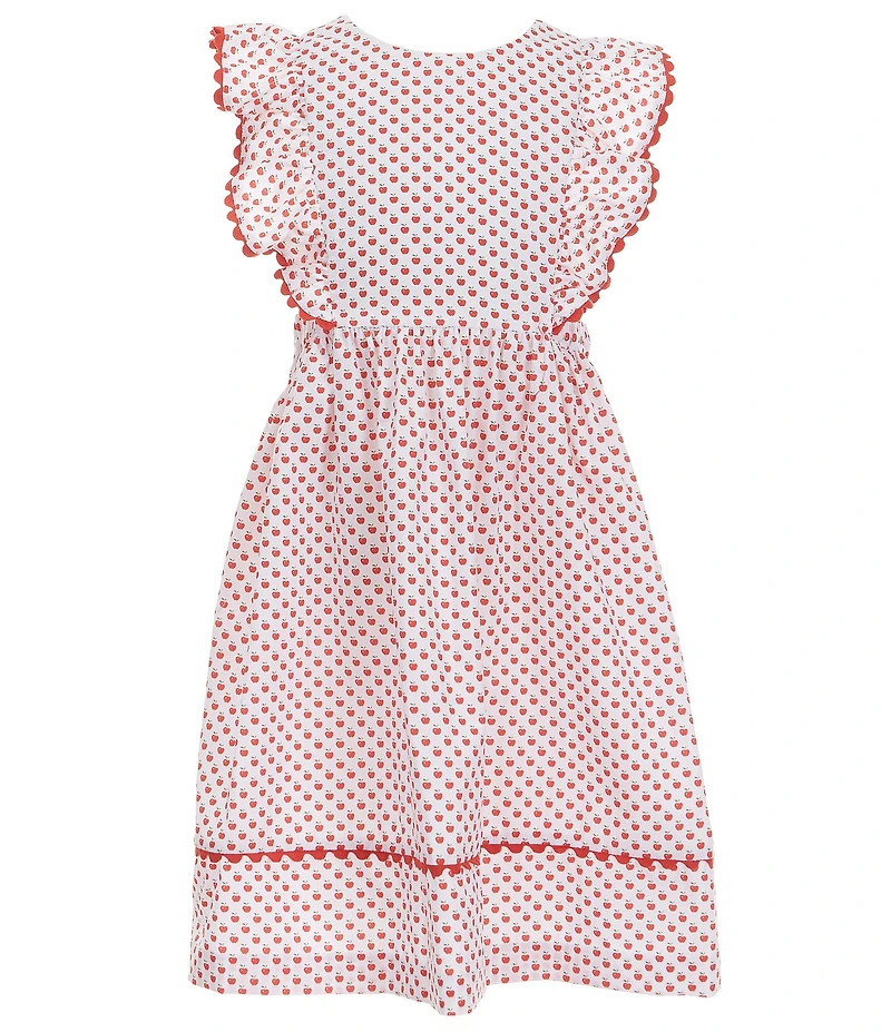 Edgehill Collection Little Girls Apple Pinafore Round Neck Sleeveless Ruffle Dress in Chattanooga, TN