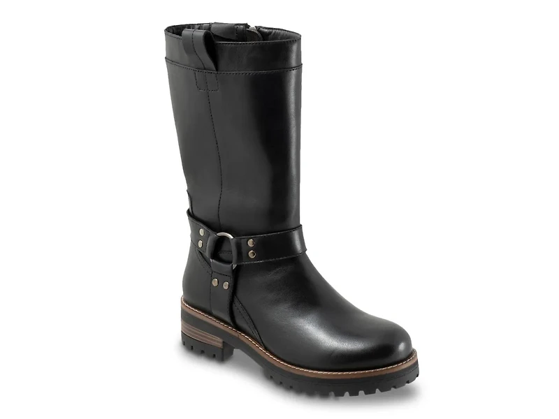 Pair up your favorite jeans or dresses with the Soft Walk Edgewater boot for an attention-grabbing style. This mid-calf boot is designed with leather upper for a premium look and harness accent for a classy appeal. Durable lugged sole provides reliable traction.