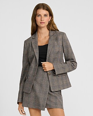 Women's Plaid One Button Blazer