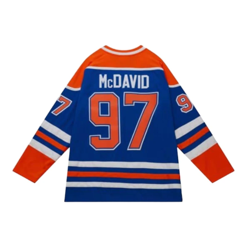 Show your team spirit in this Show your team spirit in this Edmonton Oilers Blue Line Connor Mcdavid 2015 Mitchell & Ness Jersey..