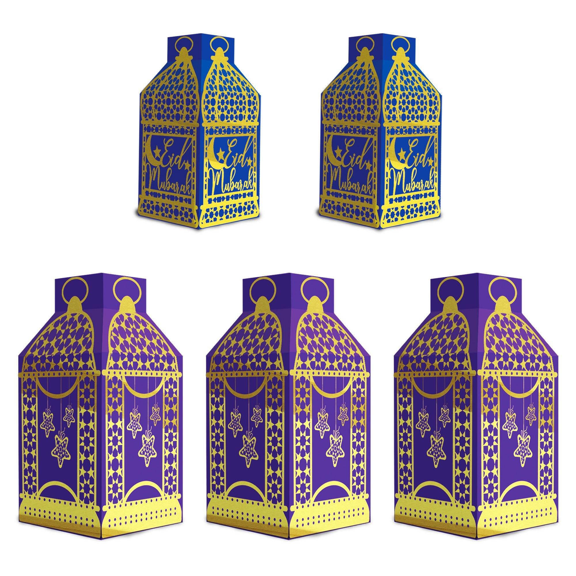Eid Paper Lanterns, 5ct, Hanging Decorations, 3 Large Lanterns (8.5in), 2 Small Lanterns (6.5in)