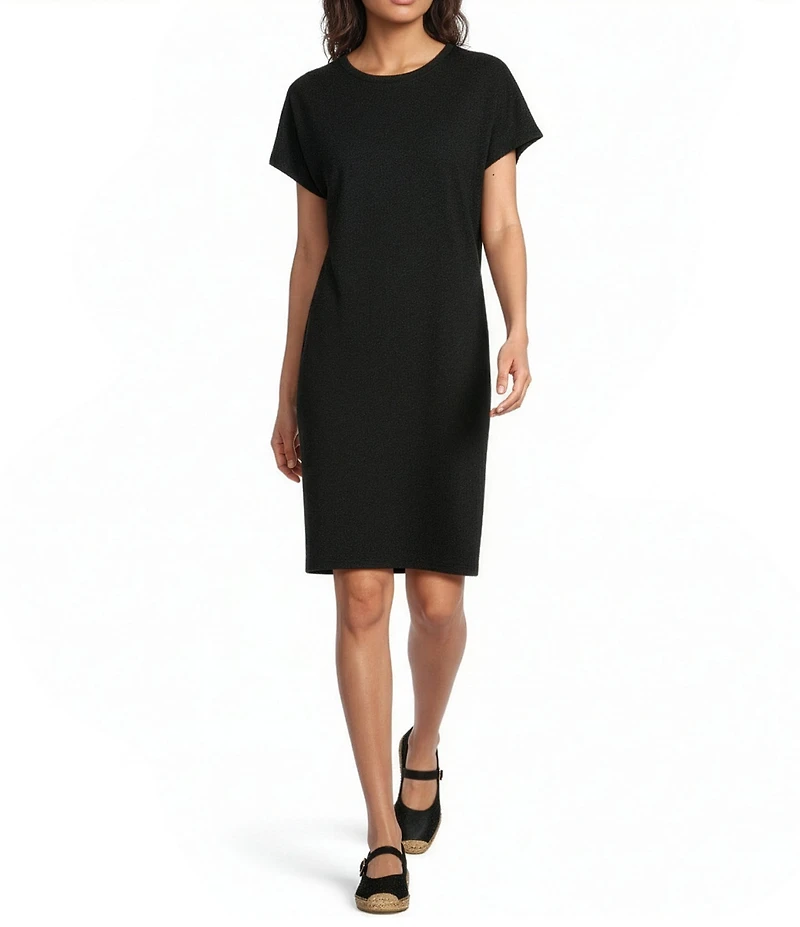 Eileen Fisher Organic Cotton Blend Stretch Jersey Crew Neck Short Sleeve Dress