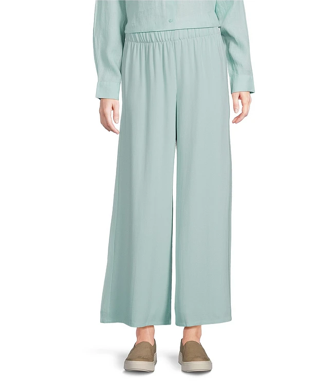 Eileen Fisher Silk Georgette Elastic Waist Wide Ankle Pants