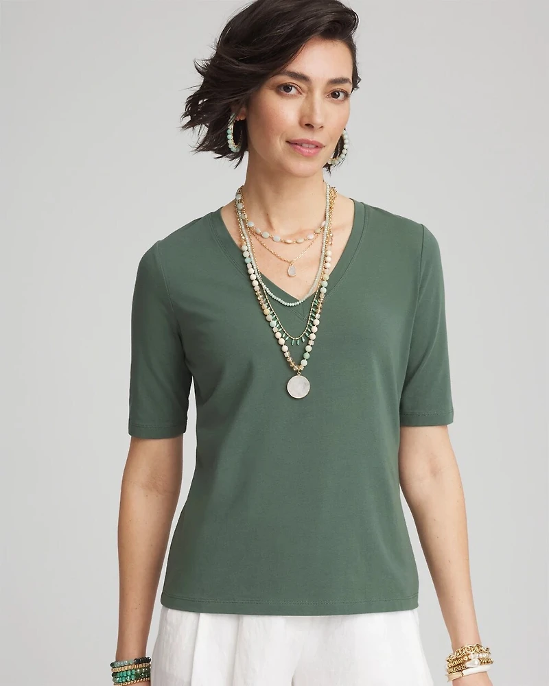 Take your tee look up a notch with our new Elbow-Sleeve Perfect Tee with a super flattering silhouette. This beautiful tee elevates your casual look with comfort and ease. Crafted in a super-soft cotton-blend making it ideal for everyday wear or dressing up.