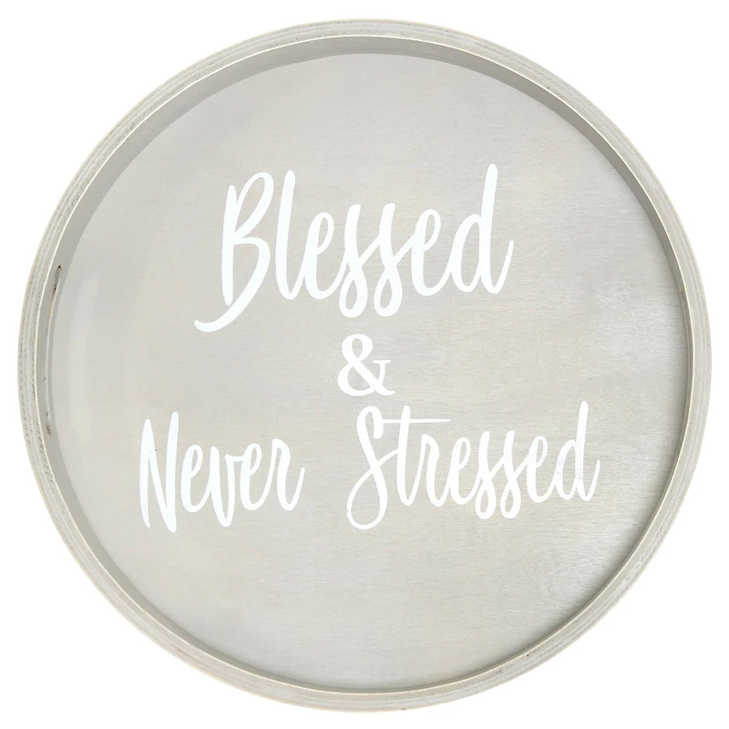 Elegant Designs™ 13.8" Round Blessed & Never Stressed Serving Tray with Handles in Chattanooga, TN