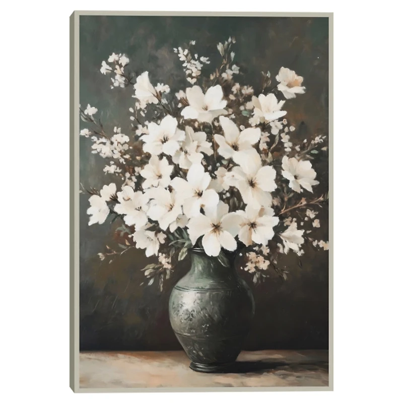 Elegant White Bouquet Framed Canvas Art Print in Chattanooga, TN