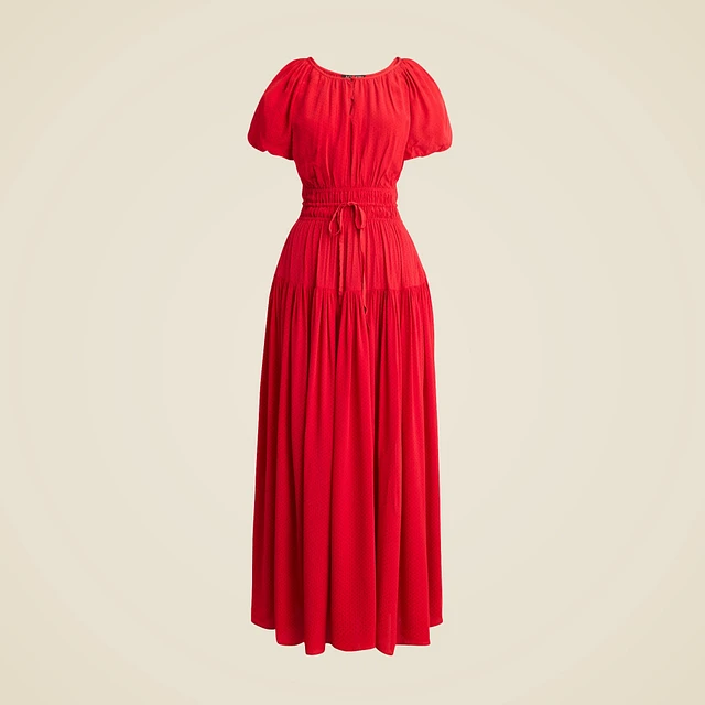 Elena puff-sleeve dress dotted crepe de chine