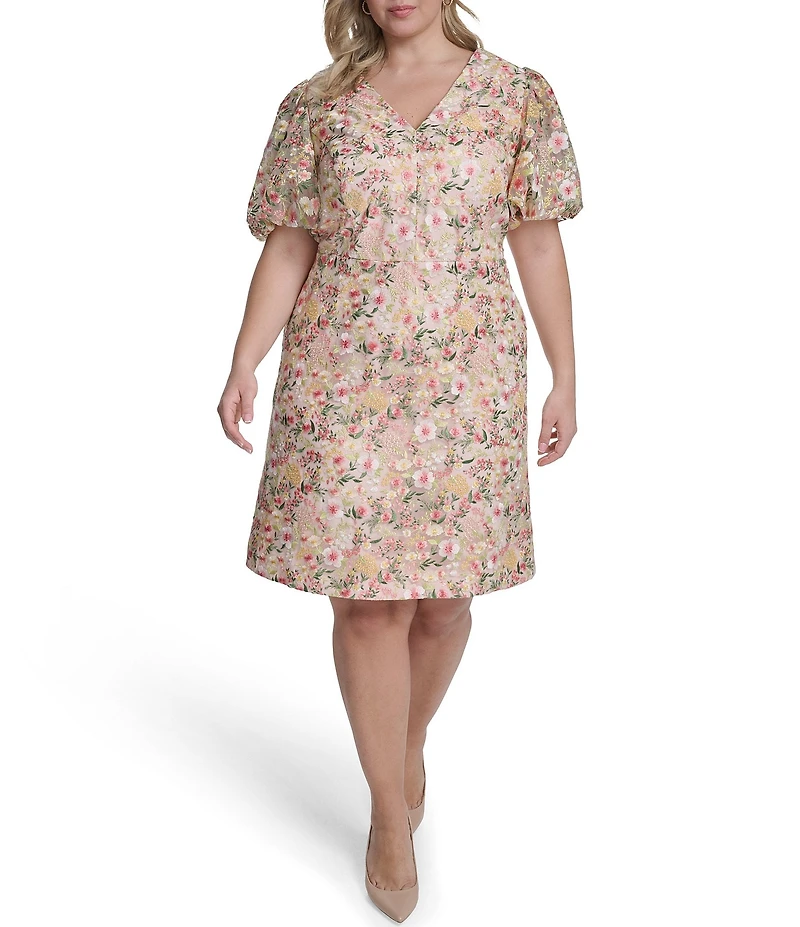 Eliza J Plus Size Floral Print V-Neck Puff Sleeve Fit & Flare Dress