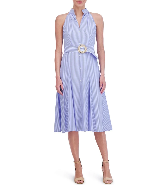 Eliza J Stripe Print Halter Neck Sleeveless Belted Shirt Dress