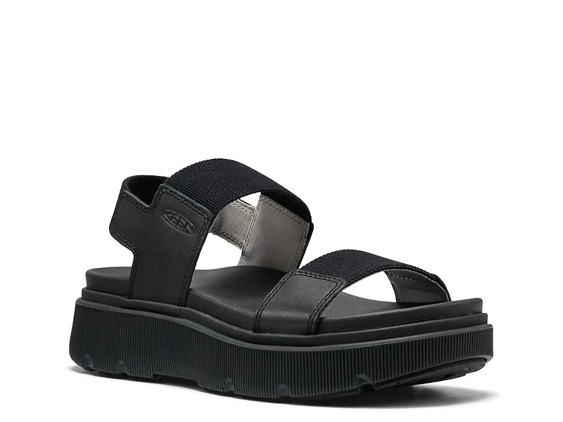 Fresh style and lasting ease are yours with the Elle Mila wedge sandal from Keen. This slingback sandal features a washable stretch gore upper made from recycled plastic bottles for sustainable comfort. Its soft fabric lining and Contoured Fit hug your foot for a naturally snug feel. Shock-absorbing footbed and arch support keep you comfortable all day. A high-rebound midsole enhances movement, and the rugged foam sole delivers lightweight durability with reliable traction. Eco Anti-Odor provides pesticide-free odor control