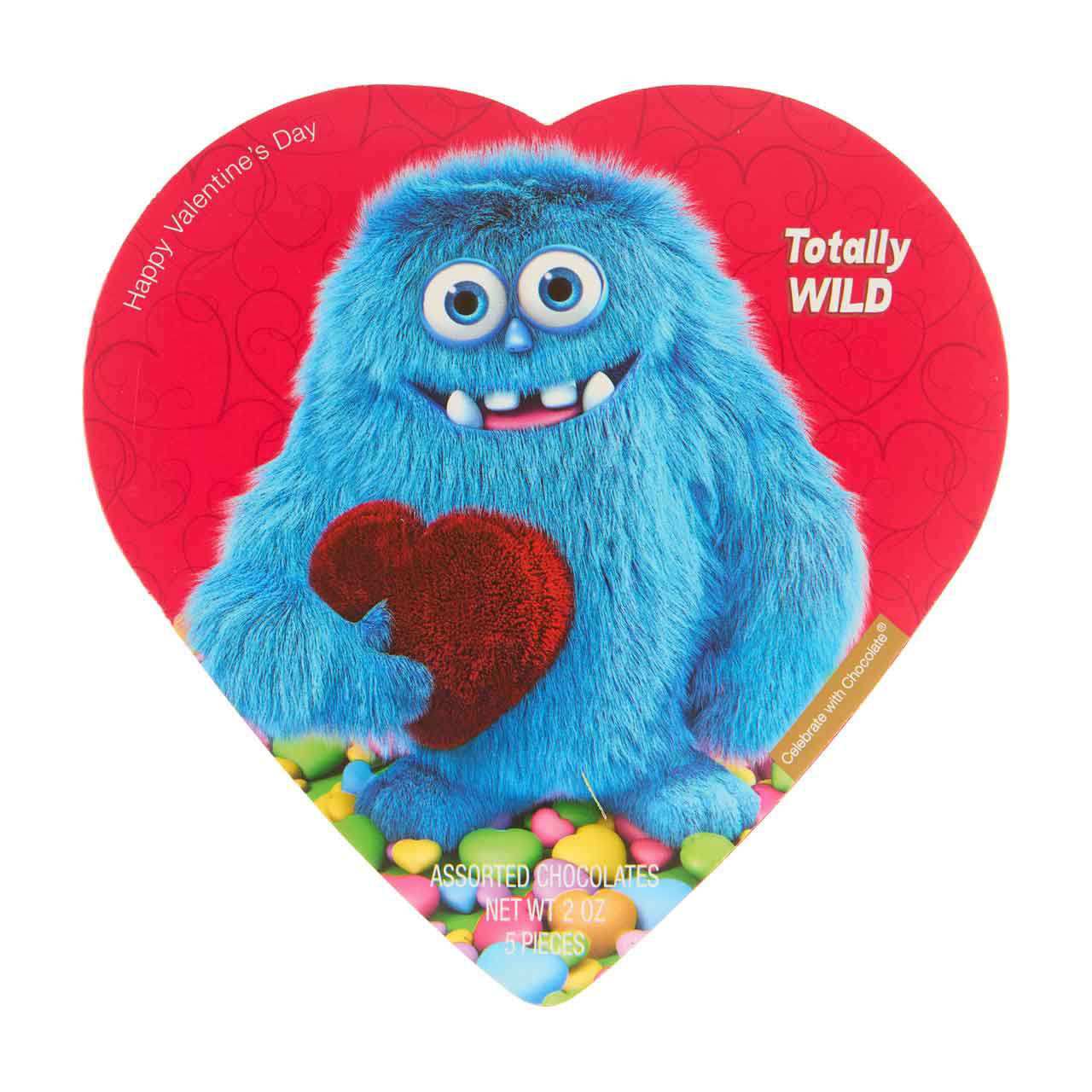 This playful design showcases a lovable fuzzy blue monster holding a heart, with a backdrop of colorful candies. It's a fun and whimsical way to express wild affection and is perfect for those who appreciate a touch of humor in their Valentine's gift.