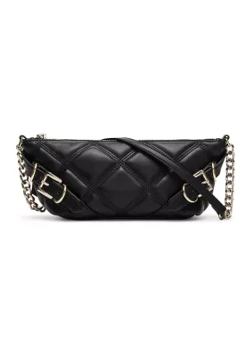 Transition seamlessly and stylishly from day to night with this elongated shoulder bag from Steve Madden featuring triple-stitch quilting and mixed metal hardware. Top zip closure Shoulder strap Interior: front wall slip pocket, back wall zip pocket Imported Product Specifications 11" L x 4" D x 4.75" H Material & Care Polyurethane Clean with a damp cloth or soft brush
