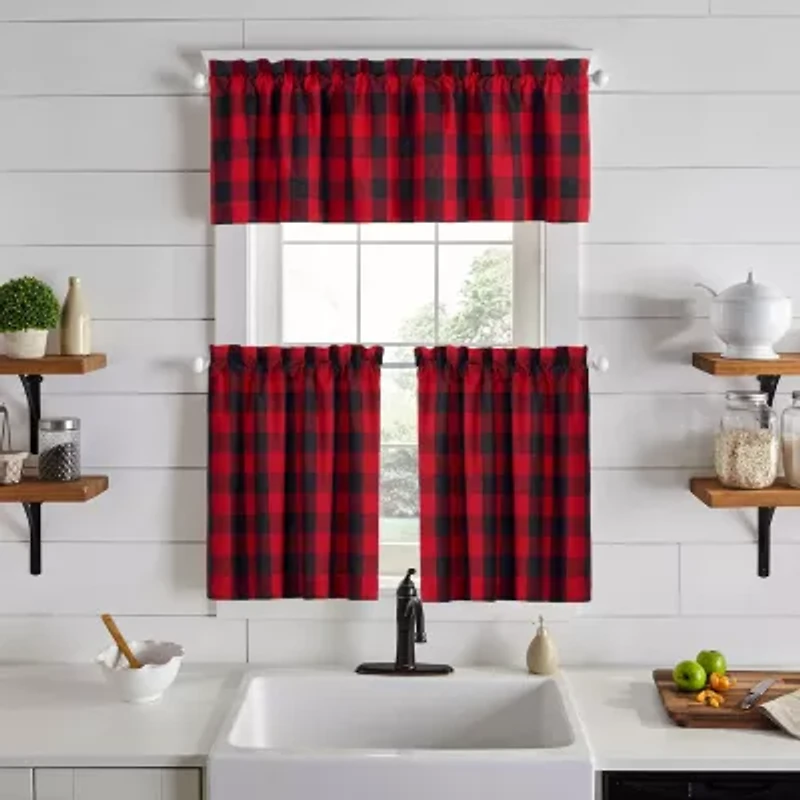 Stylish, rustic and beautiful the farmhouse living collection offers everything you need to create a rustic, modern country home. These fashionable tiers are made from premium quality cotton and feature the perfect red and black buffalo check pattern in a variety of colors to create the best farmhouse, country, or lodge look. Tiers are offered in two sizes and offer the perfect amount of privacy and style for the kitchen or any small window, while still allowing natural light to shine through. Soft cotton can be easily ironed to release stubborn creases and make your tiers wrinkle free. Delicately hemmed edge adds a finished look and prevents wear and tear. Sold as a set of two tiers measuring 30 inches wide by choice of 24 or 36 inches long, coordinating valance sold separately. 2-inch rod pocket with 1-inch decorative header.