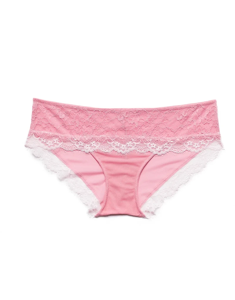 The Emanuelly Hipster Medium Pink lace hipster is a romantic-fashion essential. Effortlessly flirty and feminine, this style features Style: Hipster Panty for a flirty, feminine touch. (Available in sizes XS-XL.)