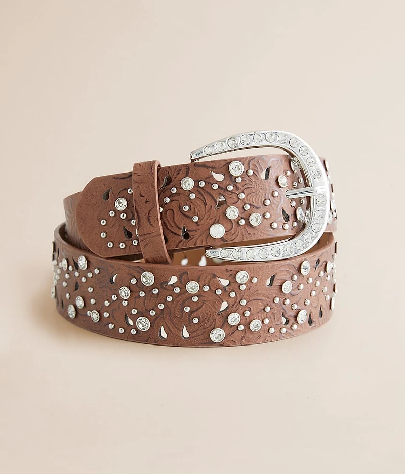 Laser cut faux leather rhinestone 1 1/2" belt Stud accents