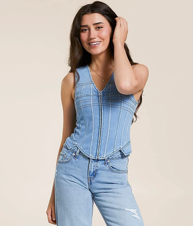 Girls 4-6x Denim Vest and Embroidered Floral Dress Set