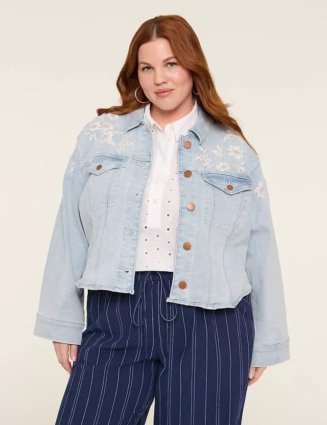 KatieJNYC Big Girls Newport Embroidered Denim Jacket