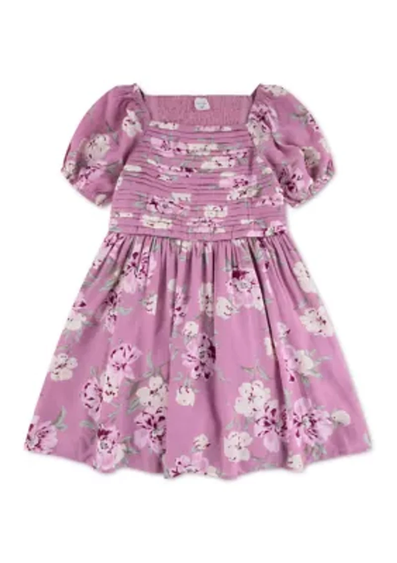 A crinkled texture and smocked back ensure a flattering, comfortable fit on this abercrombie kids mini dress that's covered in florals and finished with puffed sleeves. Pullover Square neck Short puff sleeves Smocked back Imported Material & Care 85% rayon, 15% nylon Machine washable