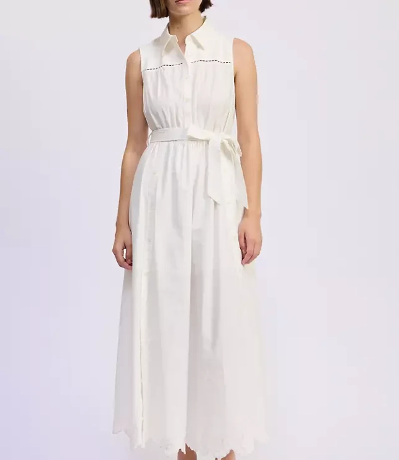 The Brittany dress is a sleeveless maxi shirtdress, featuring ladder trim and a button front with slit. This item can only be exchanged or returned by mail., Imported:, Length: 52"from shoulder to hem Loft En Saison Brittany Maxi Shirtdress Size XS White Women's by Loft Size Regular - XS White Women's Shirtdress, Dresses Dressy