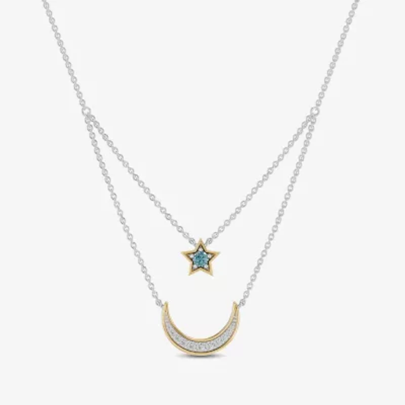 Enchanted Disney Fine Jewelry Womens 1/6 CT. T.W. Genuine Blue Topaz 14K Gold Sterling Silver 15 Inch Pendant Necklace